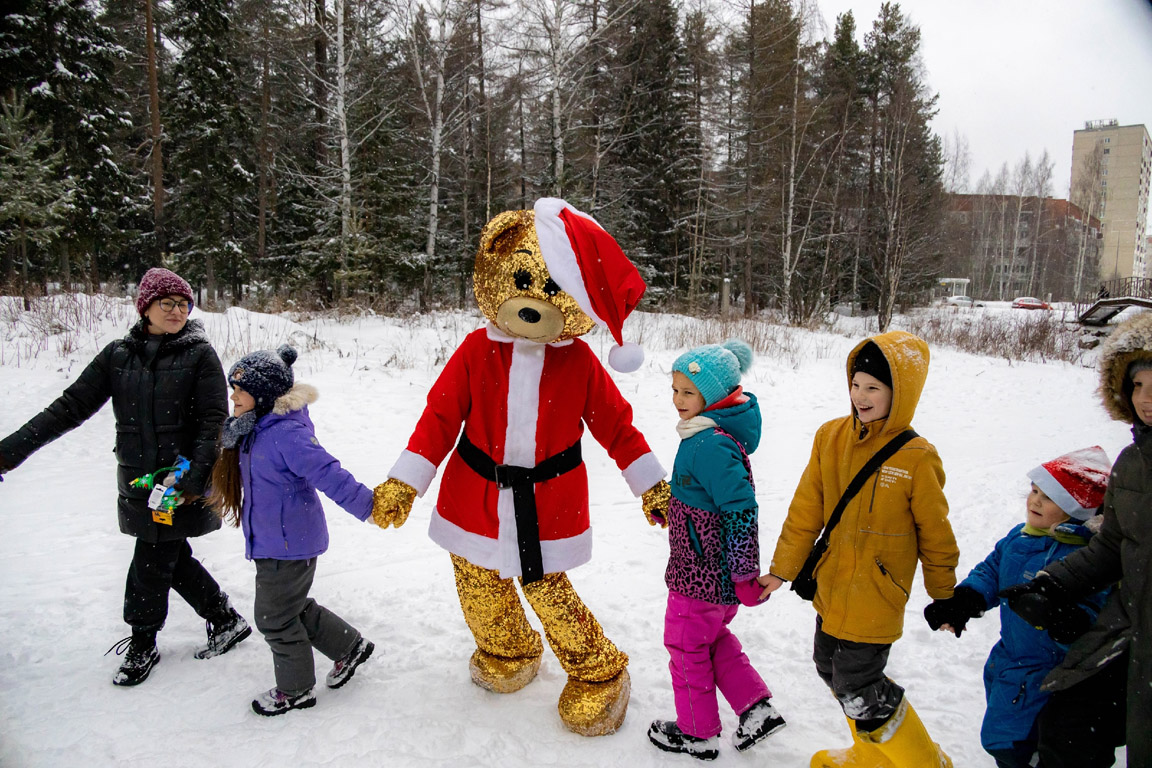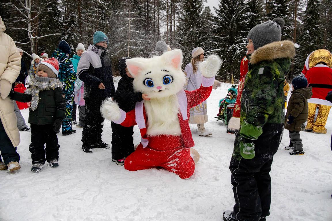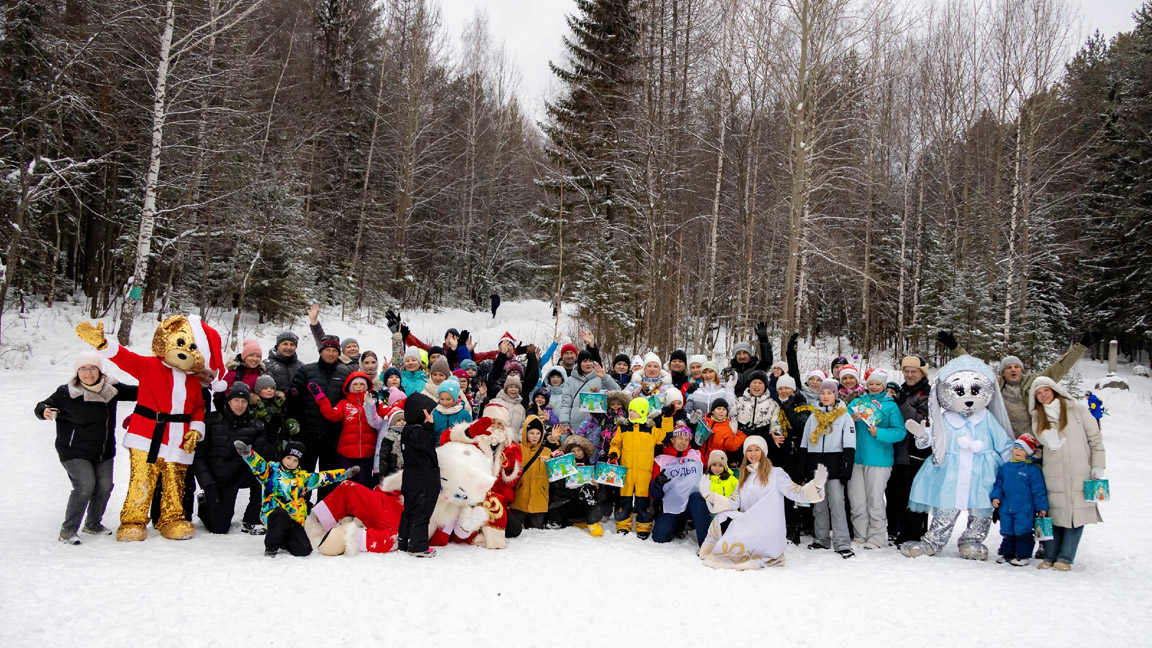 Дети с удовольствием играли на свежем воздухе в лесу, пили горячий чай с пиццей и горячими хотдогами, приговленными на мангале, все были счастливы получить подарки от Деда Мороза и Снегурочки!